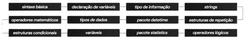 Apesar de não ser um treinamento engessado, alguns recursos são essenciais e indispensáveis no conteúdo programático do curso, veja abaixo alguns deles: